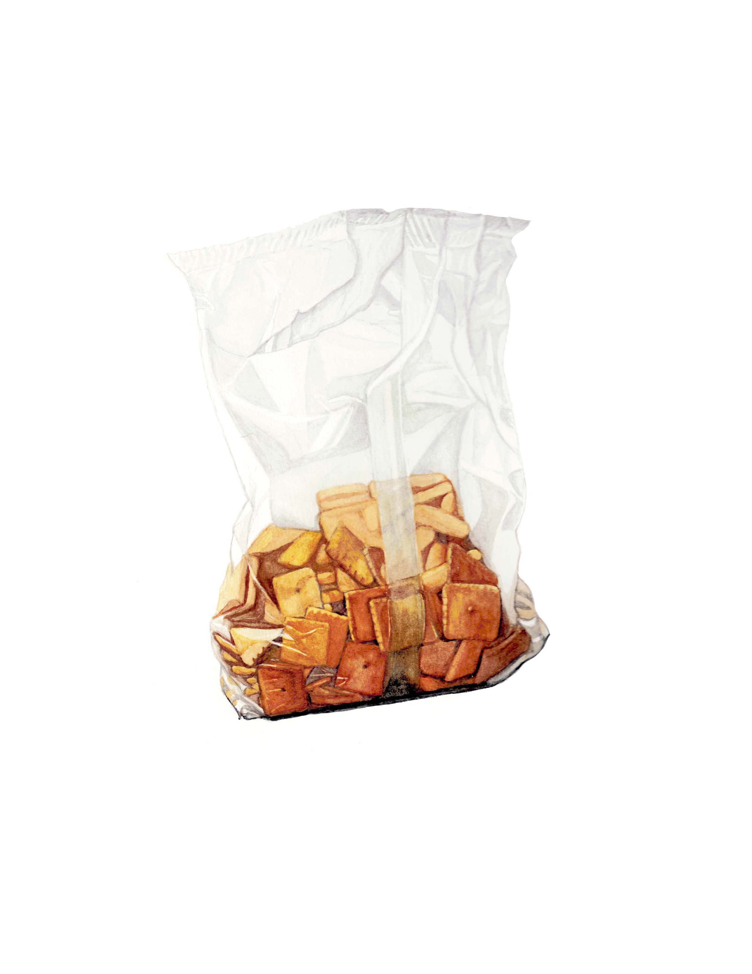 An art print of my original watercolor painting of cheese crackers. My art is printed on 8.5 x 11″ archival-grade paper from a wind-powered facility in Farmington, Maine. Ships within 1-2 business days.